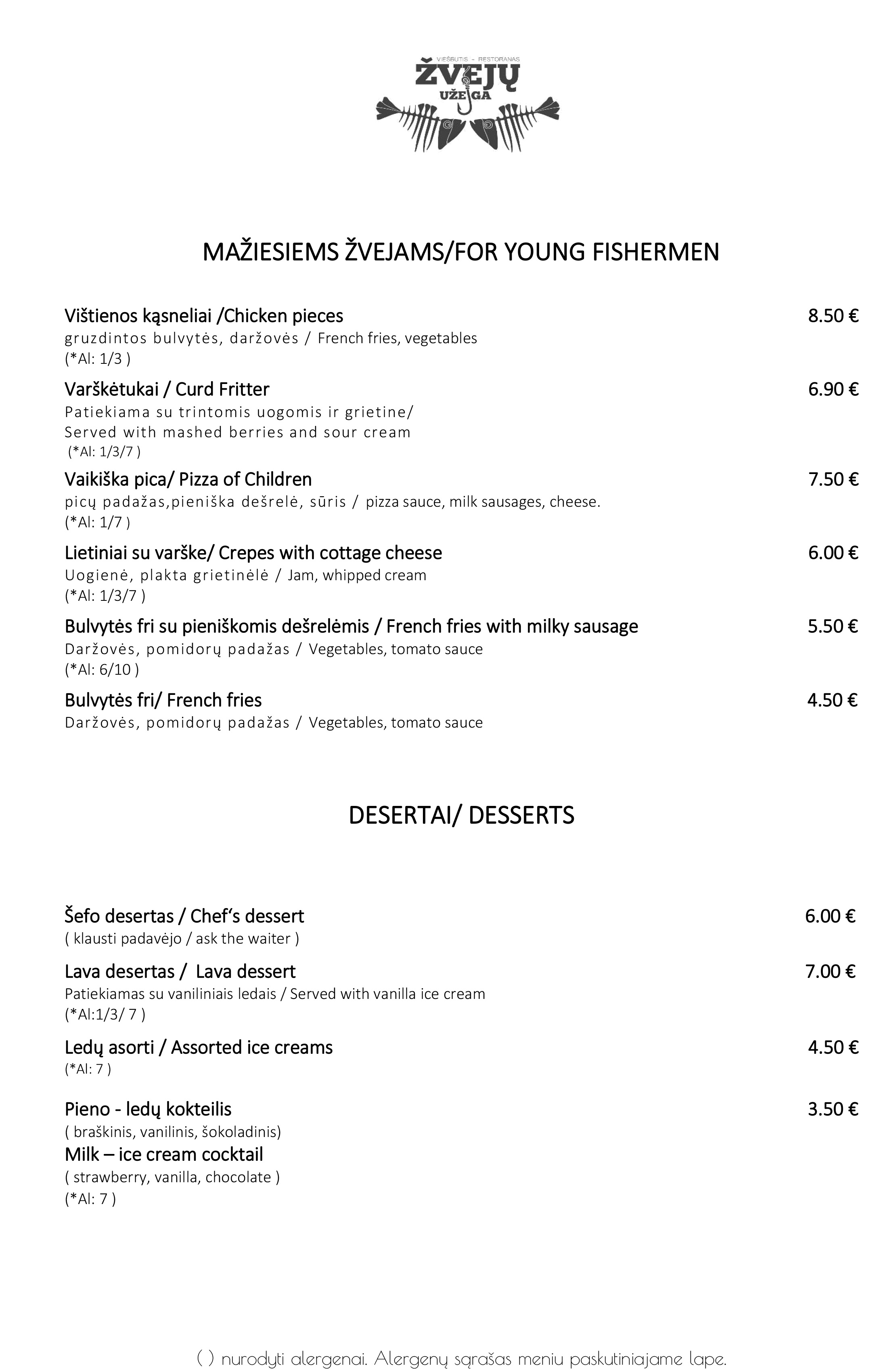 „Žvejų užeigos“ meniu