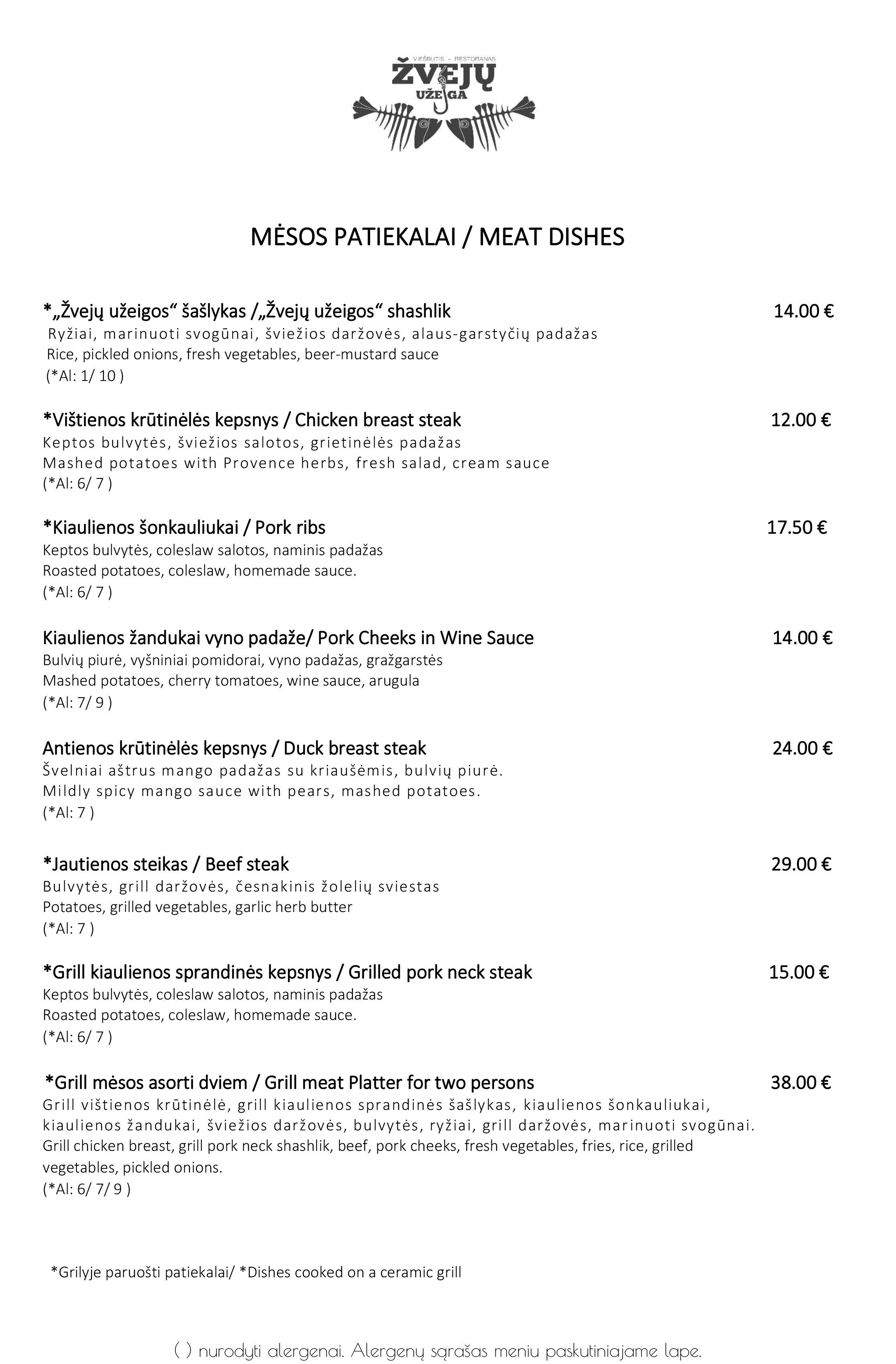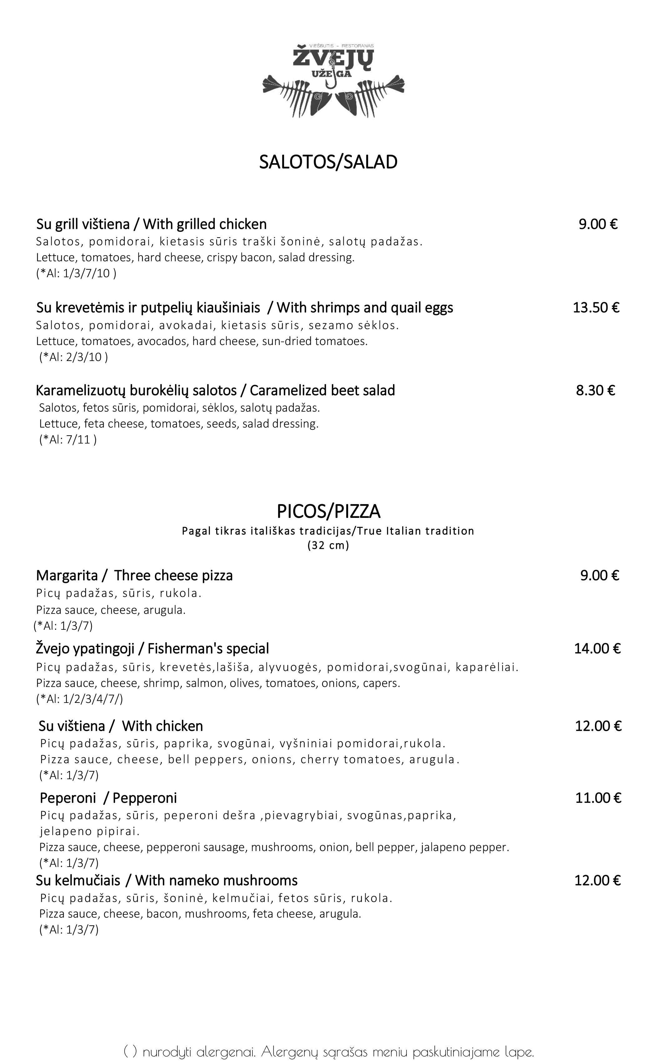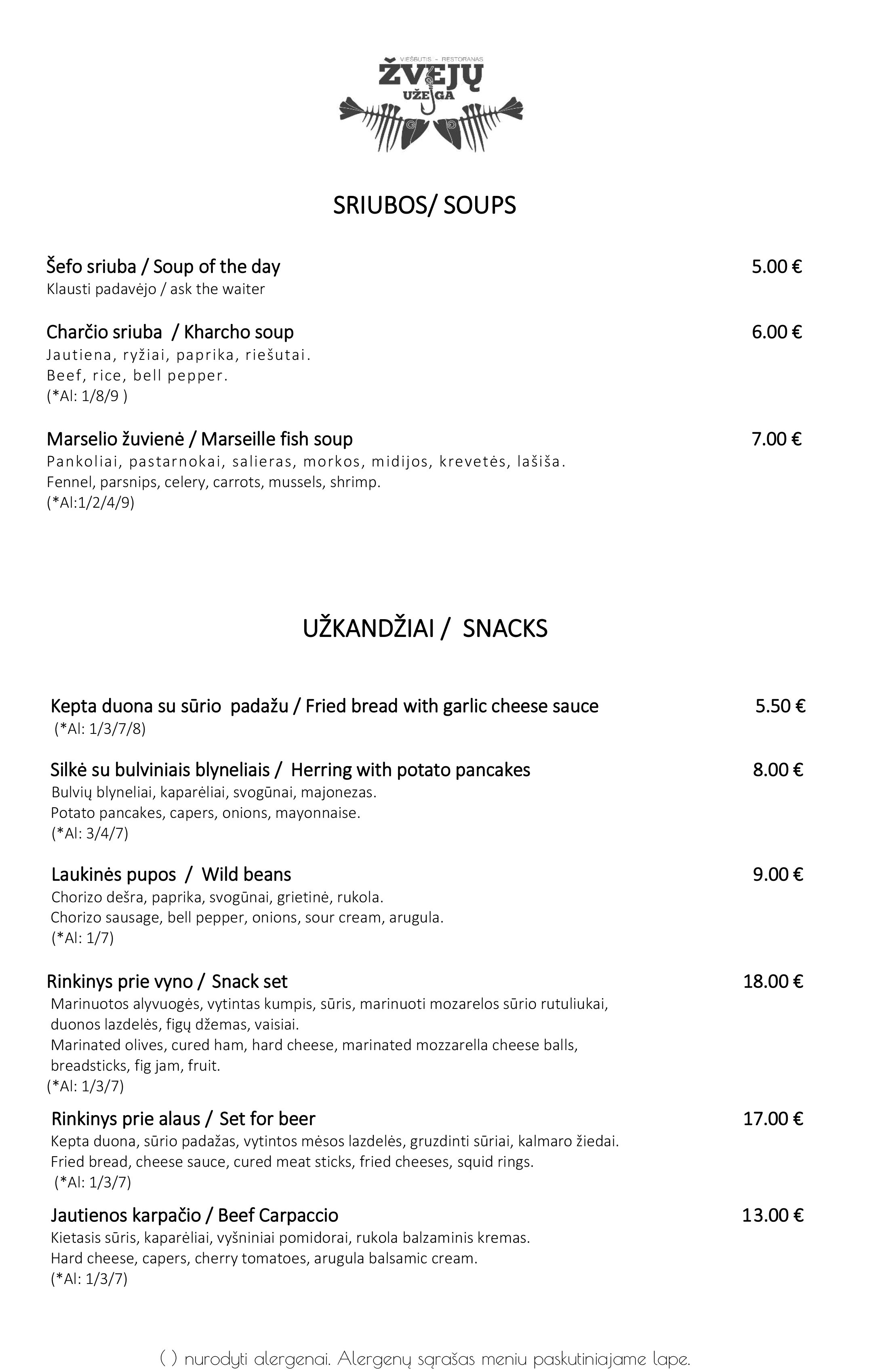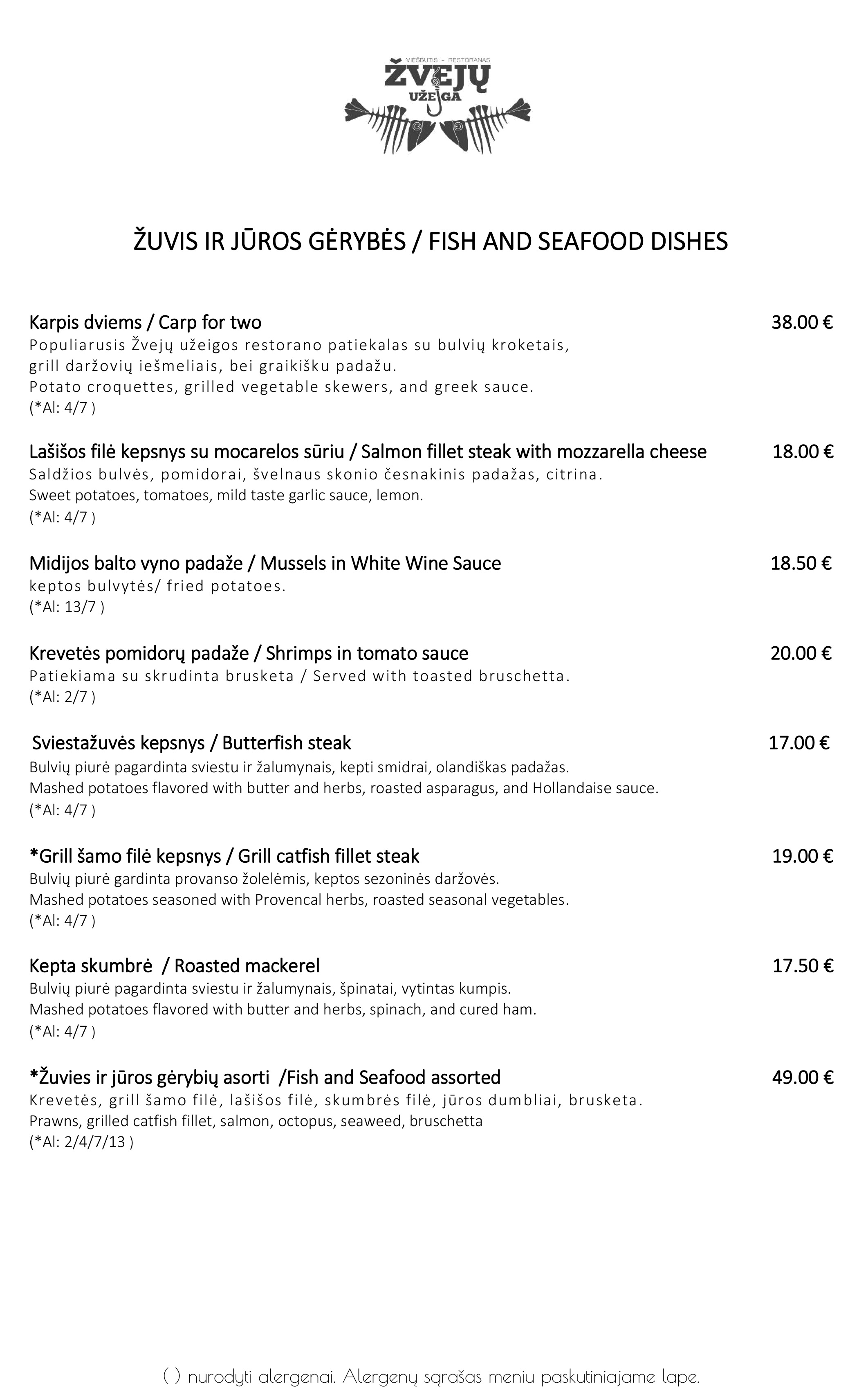 „Žvejų užeigos“ meniu